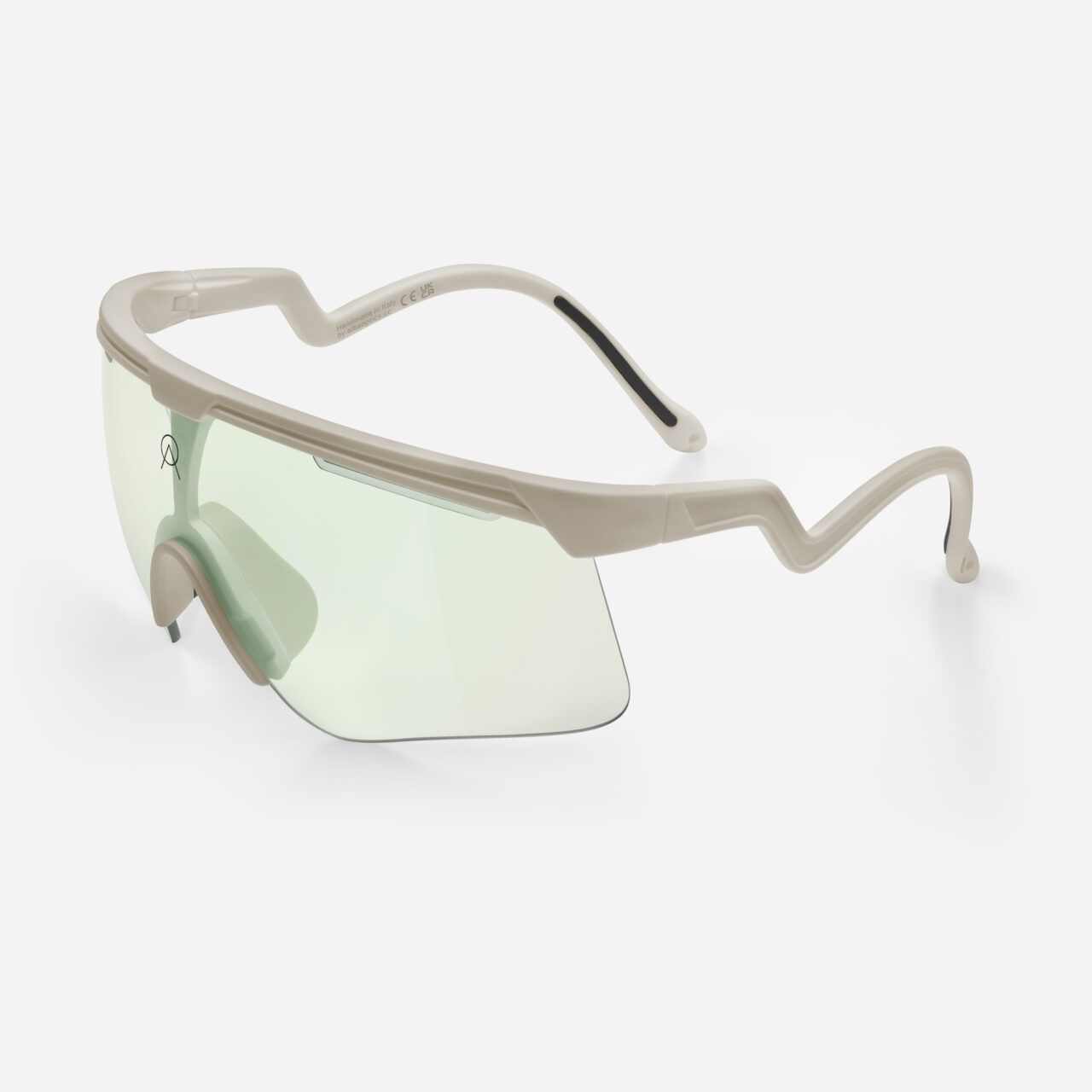 Kính DELTA được lấy cảm hứng từ các mẫu kính của thập niên 80 và 90. Chất liệu gọng kính được làm từ Tr90, một loại nylon và sợi carbon, tương thích sinh học và an toàn cho da, ngay cả khi sử dụng lâu dài. Gọng kính nhẹ hơn 20% so với các chất liệu thông thường khác và cung cấp khả năng chống va đập và kéo căng tốt hơn. Nó có độ bền cao mà không bị biến dạng khi tiếp xúc với nhiệt độ cao. Thiết kế của kính cho phép tầm nhìn hoàn hảo khi người sử dụng chuyển mắt từ bàn đạp lên đường. Khía cạnh này giúp vận động viên giữ tập trung vào hiệu suất mà không bị phân tâm. Các thanh gọng kính chắc chắn và đảm bảo không bị xê dịch ngay cả khi va chạm hay di chuyển đầu đột ngột.